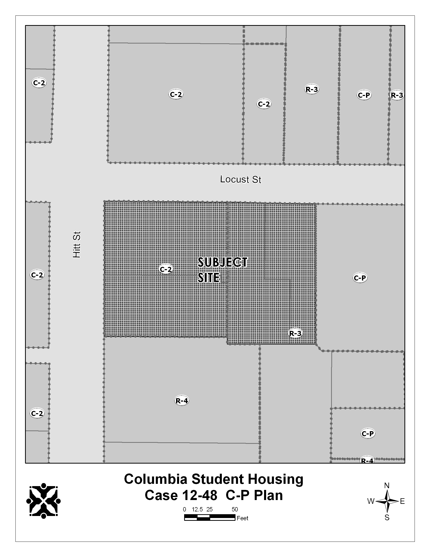 A request by RDC-PC, LLC, for a C-P development plan. The 0.65-acre property is located at 1100-1108 Locust St. (Case #12-48)