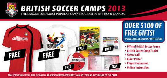 *Register online by May 3rd to receive a FREE replica British Soccer Jersey!